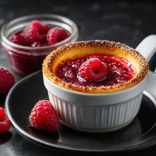 - Изчакайте горената захар да изстине за около 1 мин. и украсете с малини.